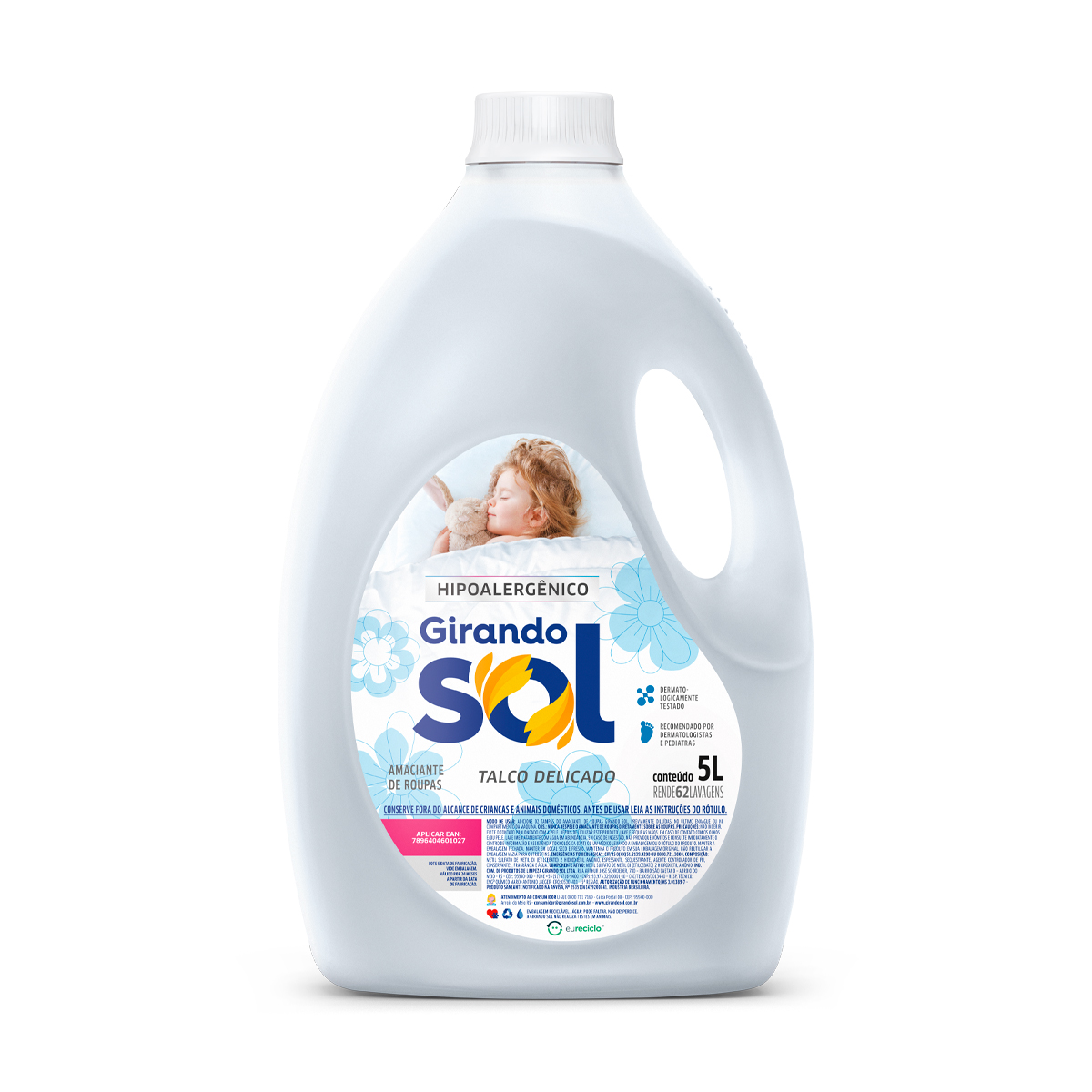 O Amaciante de Roupas Girando Sol Hipoalergênico 5 L foi desenvolvido para ser o abraço mais seguro que sua família pode receber. Sua fórmula exclusiva une a maciez profunda ao cuidado extremo, sendo a escolha número um para quem possui pele sensível ou propensa a alergias.