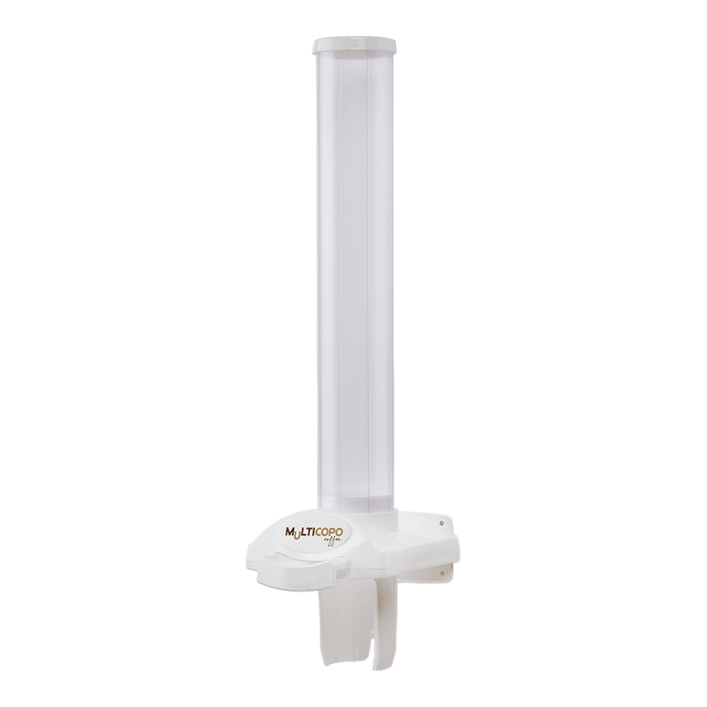 Prático, econômico e higiênico e com um botão que dispensa apenas um copo por vez, o Multicopo tem tamanho compacto e aparência discreta que não polui o ambiente. Tubo sem emendas, tornando o tubo uma peça única, sem recortes. A tecnologia do Multicopo proporciona um copo por clique. Com um sistema de clique único, ele ativa as pequenas engrenagens de separação que geram a divisão perfeita dos copos armazenados no tubo. Isso além de bom para o meio ambiente, é excelente para o bolso na hora da economia. Multicopo, o verdadeiro poupador de copos. Dispensador de copos descartáveis para café, tamanhos de até 50ml.