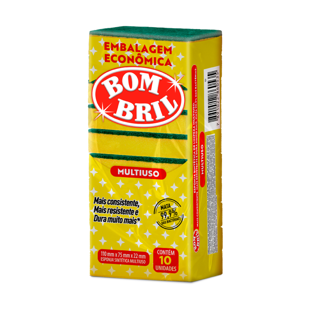 A Esponja Multiuso Bombril é a junção de eficiência e higiene que você precisava. Projetada com dupla face, ela oferece versatilidade, encarando desde as sujeiras mais leves até as mais incrustadas. Com a presença de agentes biocidas, garante a eliminação de até 99,9% das bactérias, mantendo a esponja e sua casa protegidas por mais tempo. Se é bom, só pode ser Bombril.