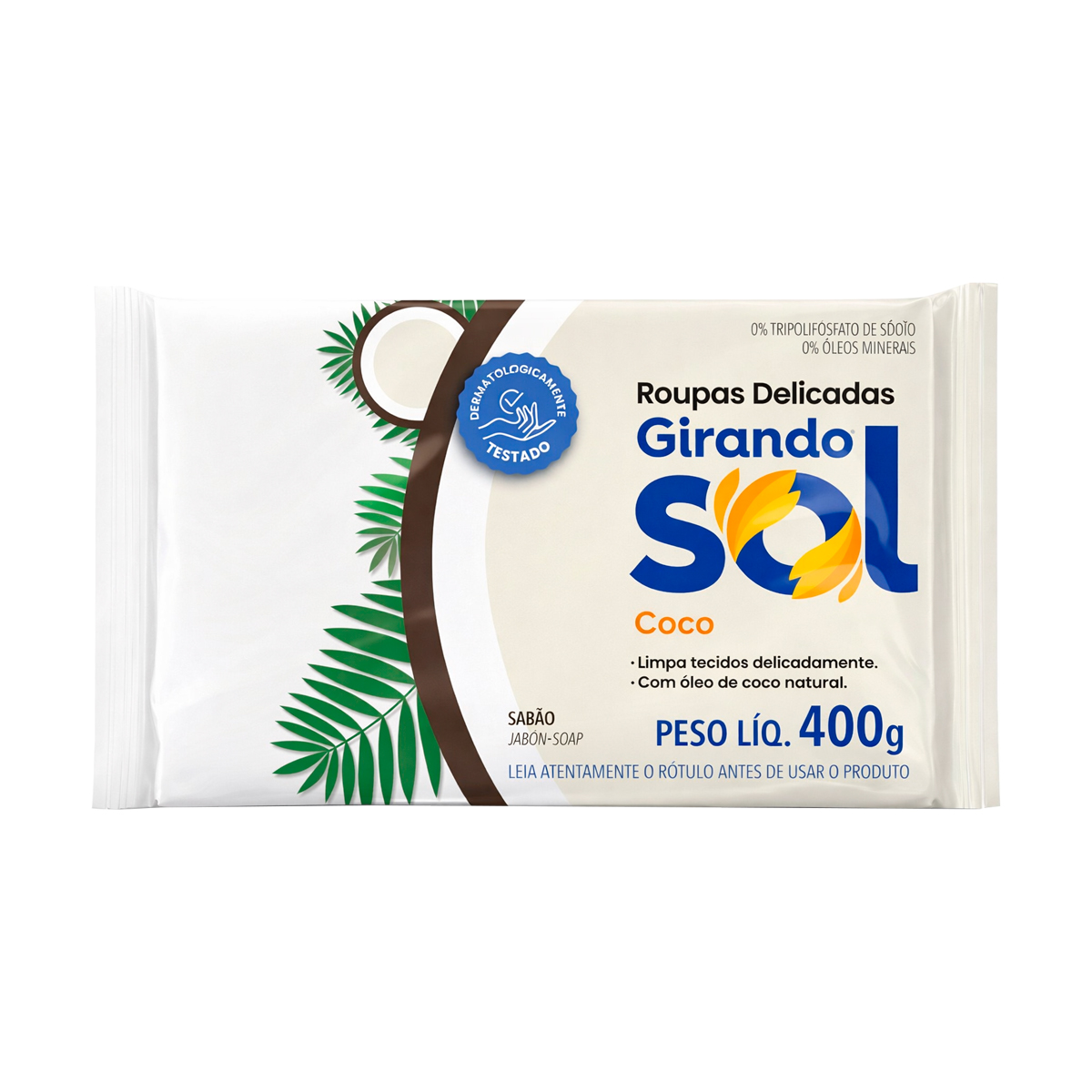 O Sabão em Barra Girando Sol Coco 400g é o segredo de quem não abre mão do cuidado essencial. Formulado com óleo de coco, ele oferece uma limpeza profunda que respeita a delicadeza dos seus tecidos e a suavidade das suas mãos. Sua versatilidade atende as mais diversas rotinas, indo de roupas finas até os utensílios. Chega de prateleiras cheias de produtos, essa é uma solução para todos os seus problemas. Leve o cuidado da natureza para dentro do seu lar.